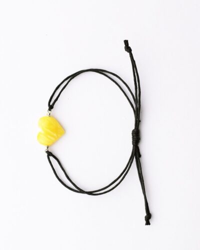 Heart amber bracelet with black adjustable thread for more comfort.