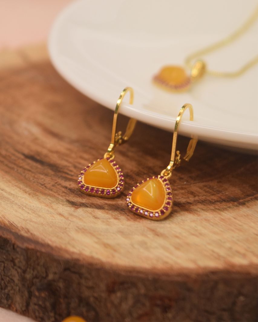 You’re never fully dressed without a dazzling set of amber and rubies that put an ear-to-ear smile on your face. Amira is a beautiful set designed with a combination of your favourite gemstones: Amber and Burma Ruby together.