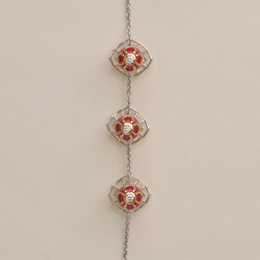 The Amyn Red Enamel Buttons bring expressive colour and cultural richness to traditional jewellery design. Created as functional buttons for ceremonial and festive attire, these pieces combine practical use with vibrant enamel detailing. As a result, they add character and distinction to heritage garments while maintaining a refined appearance.