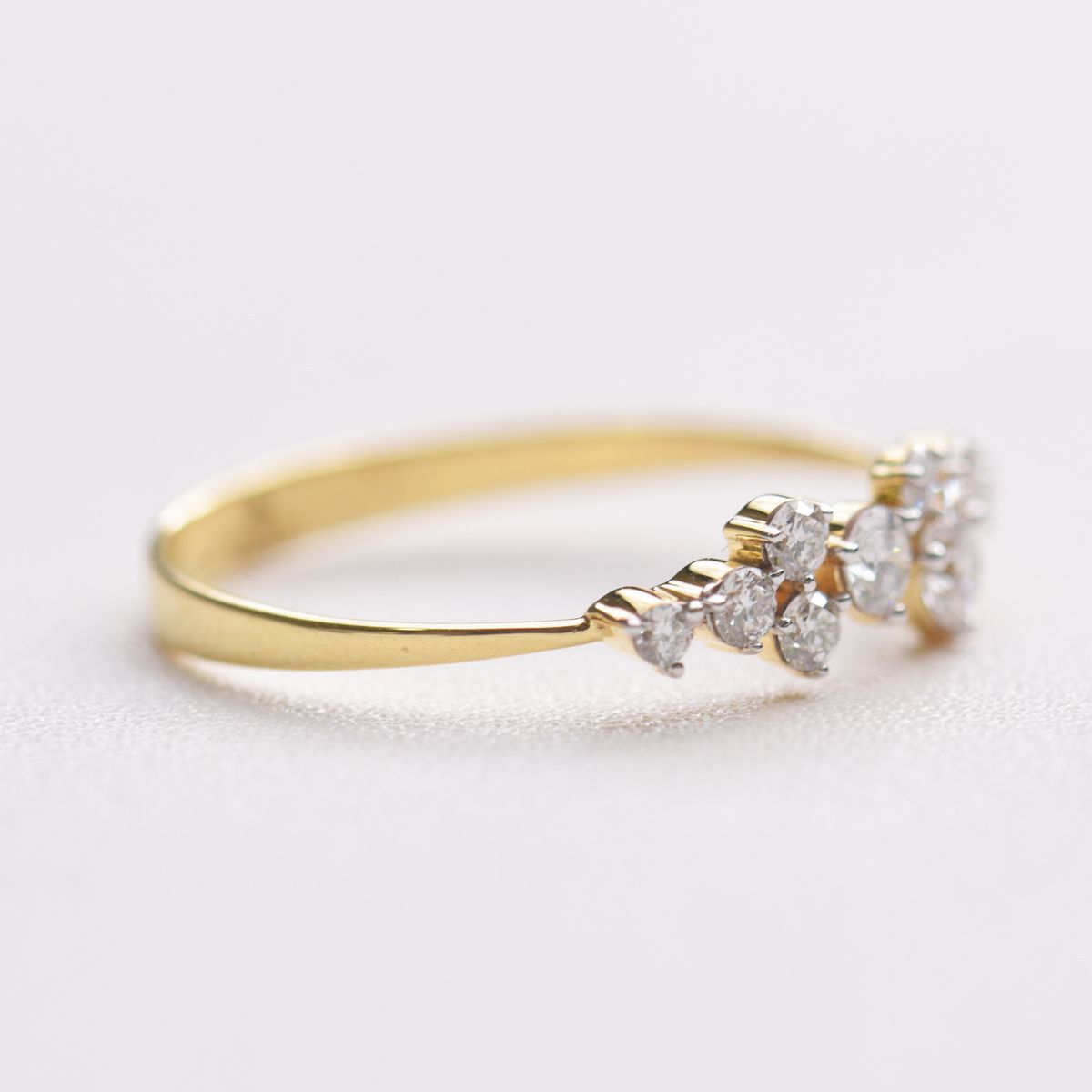 Diamonds add light and clarity, enhancing the design without excess. Additionally, the ring emphasizes proportion and refinement, resulting in a polished and enduring aesthetic. Consequently, it complements other pieces in a jewellery collection while standing out on its own.