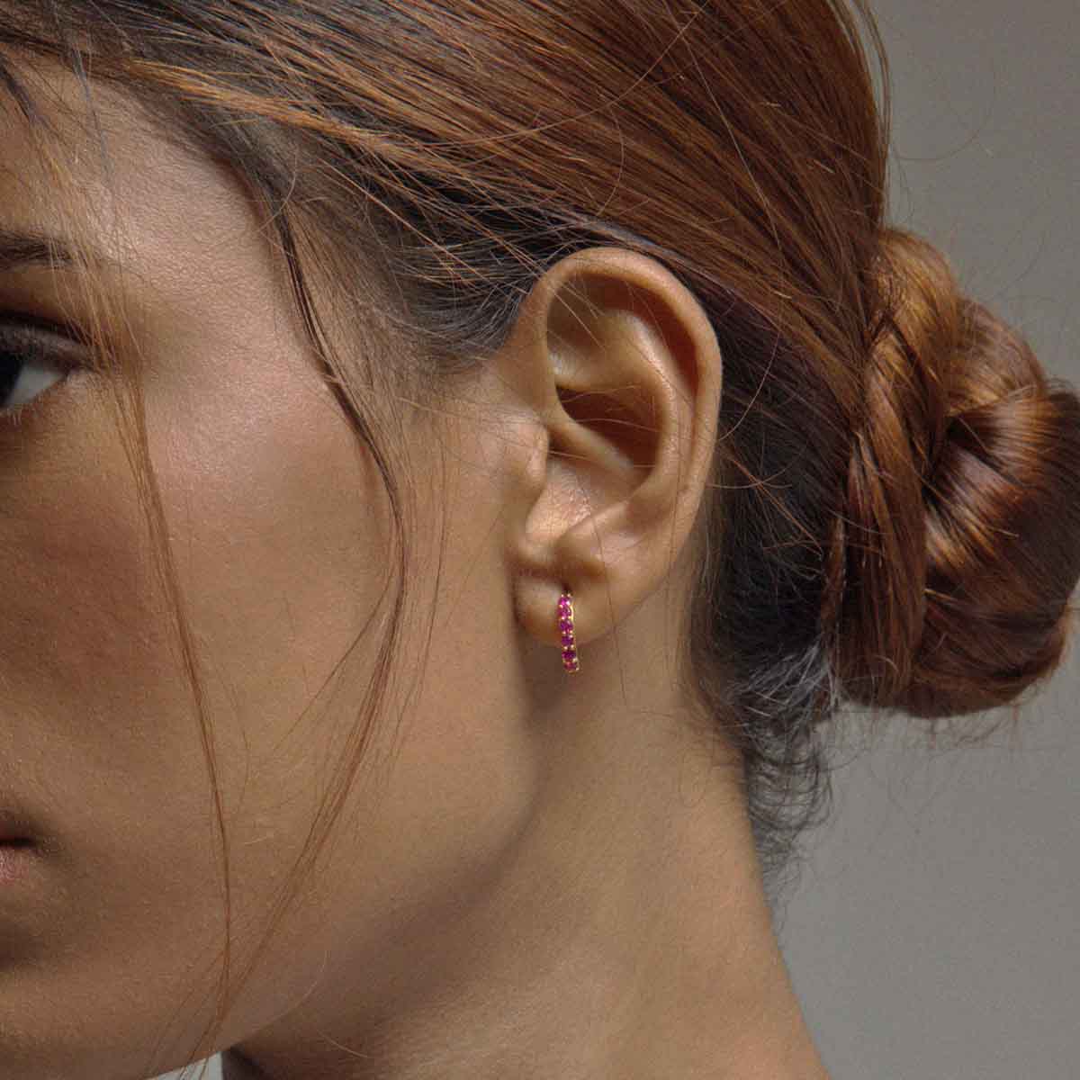 Rubies are celebrated for their deep red hue and enduring presence in fine jewellery. In this design, the gemstones add depth and character while maintaining visual balance. Instead of overwhelming the silhouette, the ruby accents enhance the classic hoop form, resulting in a look that feels polished, confident, and enduring.