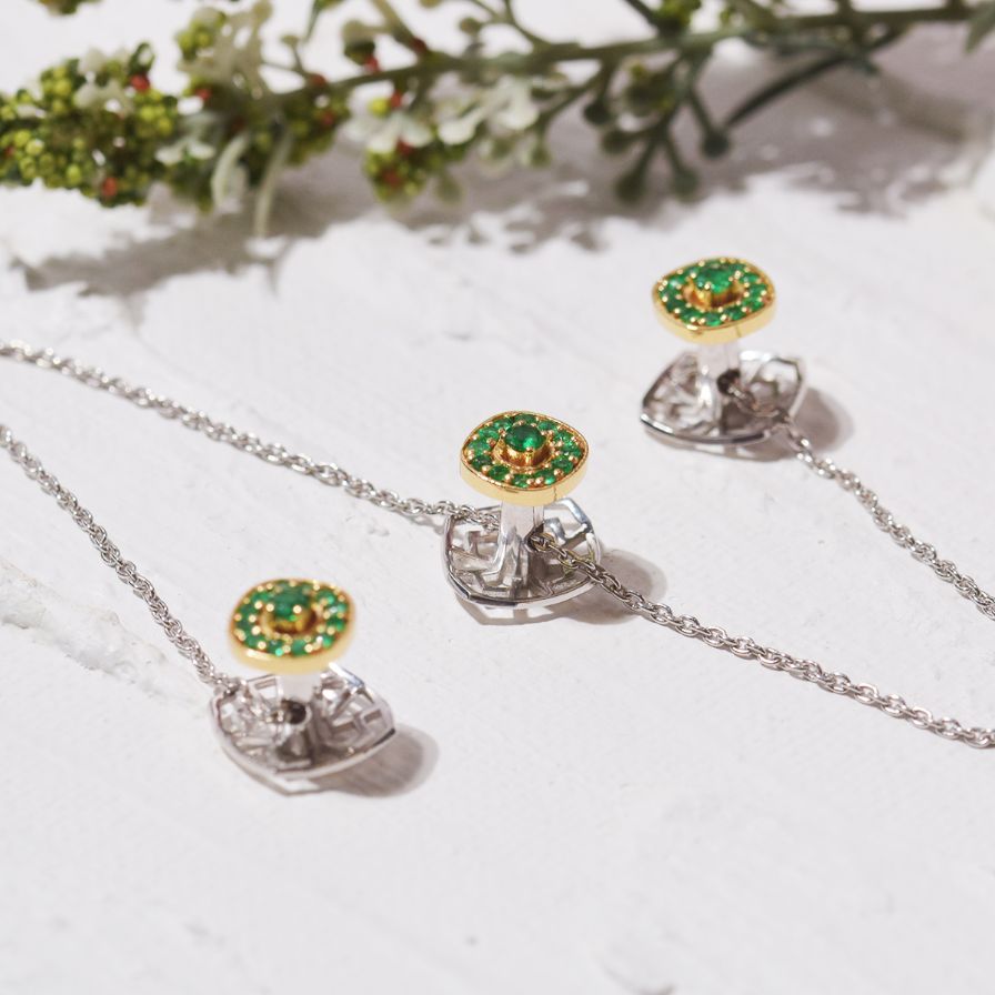 The Ayaan Emerald Buttons are crafted as refined traditional jewellery elements, combining functional craftsmanship with the richness of emerald gemstones. Designed to be worn on ceremonial or heritage attire, these buttons bring depth, elegance, and distinction to traditional garments. Their polished form ensures the emeralds stand out naturally while maintaining a balanced and composed appearance. Consequently, each button elevates the outfit without overwhelming its design.