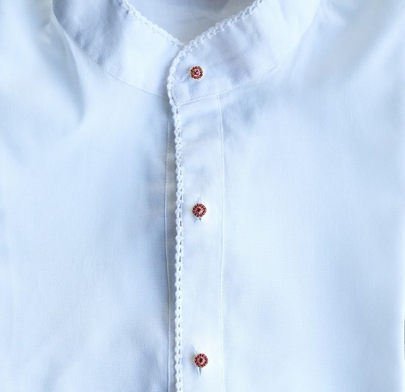 In heritage clothing, buttons serve more than a practical purpose—they add structure, identity, and visual harmony. The Ayaan Ruby Buttons elevate this role by offering a composed, elegant finish that integrates seamlessly into ceremonial wear. Moreover, the thoughtful proportions of each button allow it to complement the garment naturally, enhancing sophistication while retaining functional use.