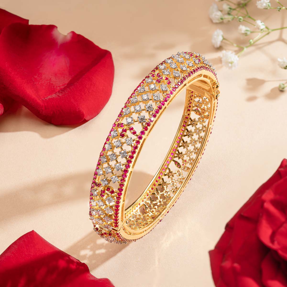 This piece also serves as an exceptional gift. Suitable for anniversaries, milestones, or meaningful celebrations, the Benazir Diamond Ruby Bangle carries both emotional and material value. Jewellery of this calibre often becomes a treasured keepsake.