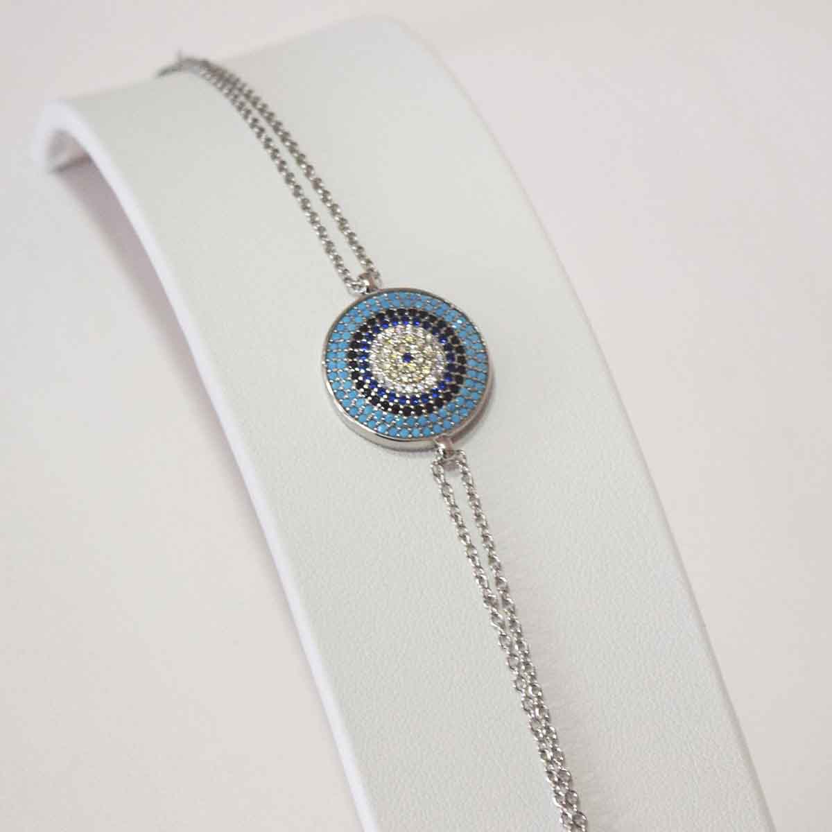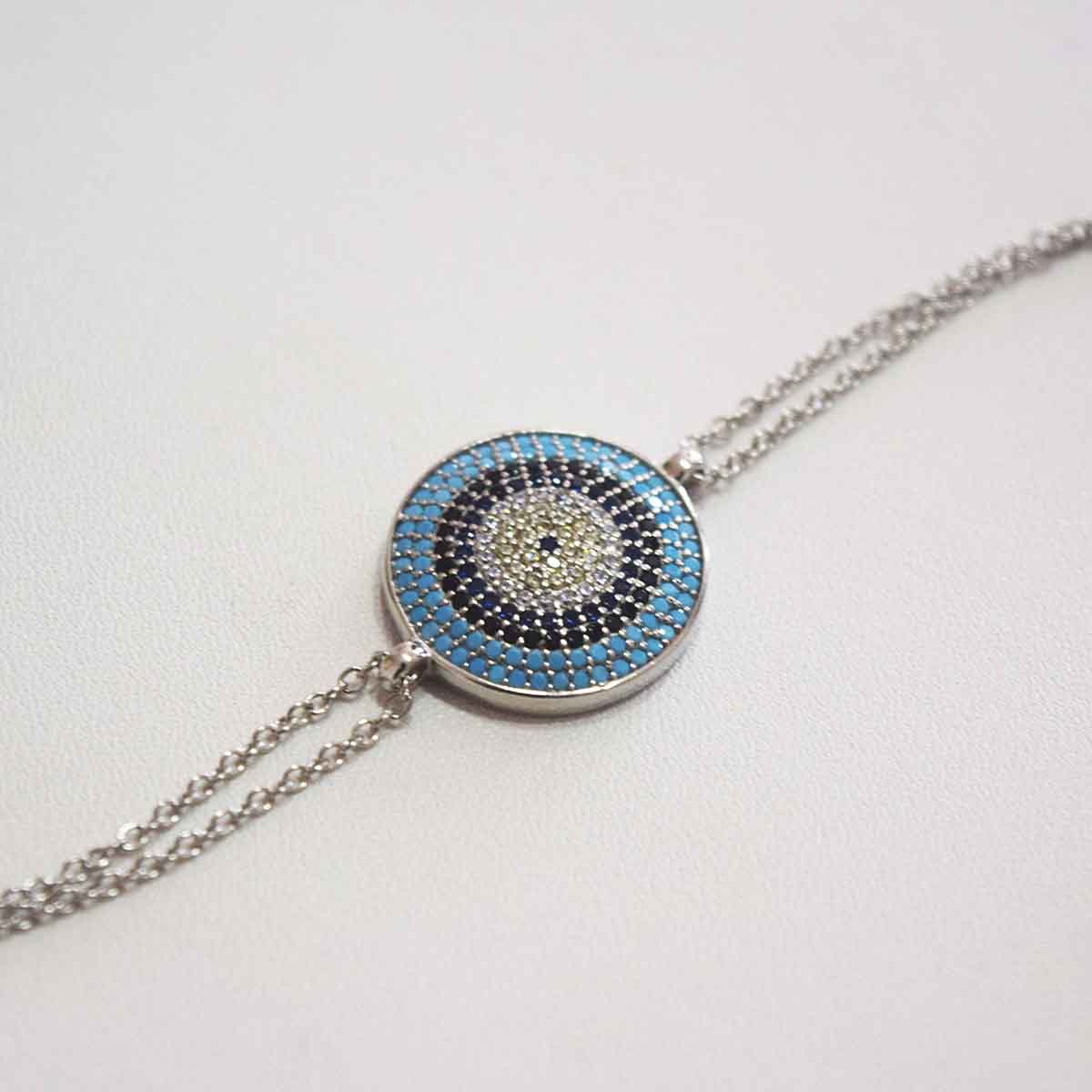 Instead of relying on subtle details, this bracelet embraces a larger and more expressive design. The prominent evil eye motif immediately draws attention, making the bracelet a clear focal point. Therefore, it suits those who enjoy jewellery that reflects confidence and personal belief. At the same time, the clean structure prevents the design from feeling overwhelming.