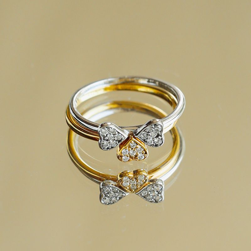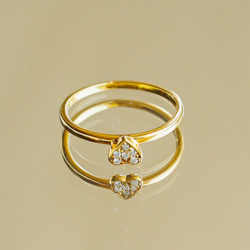 Each ring features a delicate heart motif that adds warmth and intention. As a result, the design feels personal while remaining understated enough for daily wear.