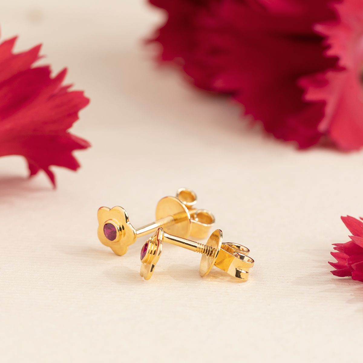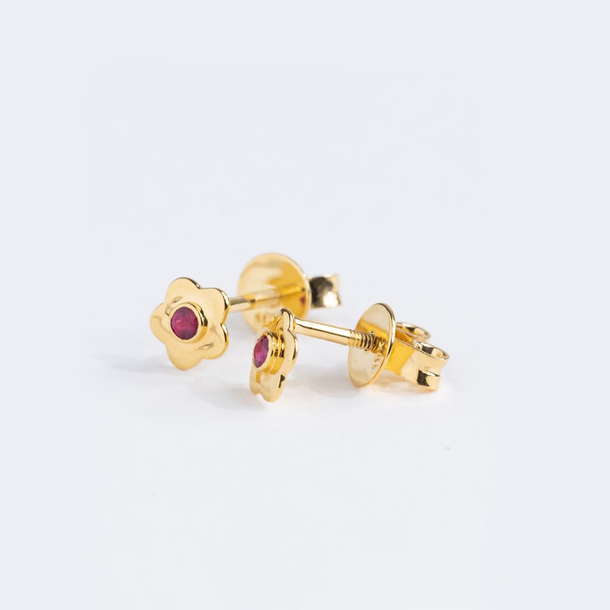 The Floret Baby Earrings are thoughtfully designed to introduce fine jewellery to babies and young children with elegance and care. Crafted in 18k gold, these earrings feature Burma rubies arranged in a delicate floral pattern, creating a soft yet refined look suitable for little ones.