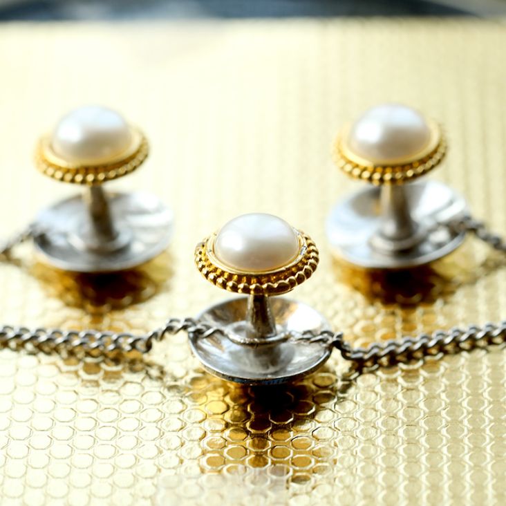 The ‘Haris’ is a smoky pearl kurta button set studded with baroque from the freshwaters. The pristine pearls enamelled with a dapper gold polish are sure to make a bold statement in men’s fashion.