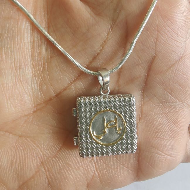 The Azhar is a robust silver Taweez for men. Subtle yet elegant, the Taweez has ‘Ya Ali’ inscribed in the centre and a beautiful texture which adds a touch of Royalty to this piece.